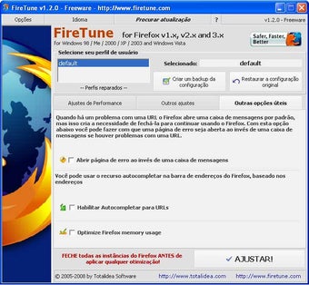 Grátis e em português. a interface do FireTunes está dividida em três abas diferentes. Clique em “Ajustes de Performance” e selecione o caso que melhor descreve o seu computador e conexão à internet. Feche todas as janelas do Firefox antes de clicar em “Ajustar”.
